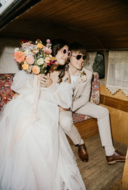 This styled shoot was one of those magical days where everything just clicked — the light was golden, the vibe was joyful, and the creative team came together to make something really beautiful. If you love retro wedding inspo with a fun twist (and a vintage VW photo bus, of course!), I think you're going to love this one.